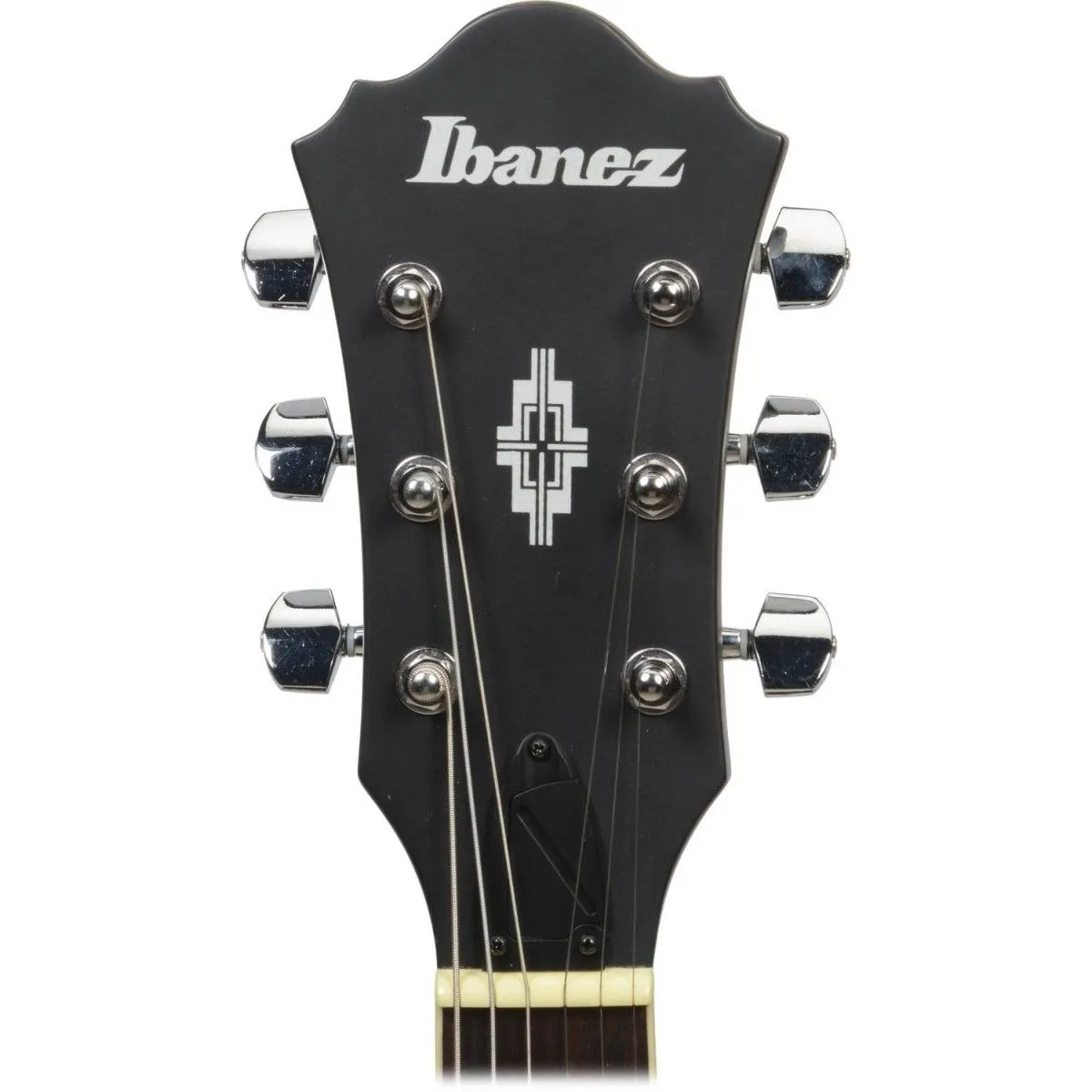 Ibanez AS53-TKF - шестиструнная электрогитара с полым корпусом от знаменитого японского производителя. Это инструмент из линейки Artcore, представленной в 2002 году и ставшей чрезвычайно популярной благодаря высокому качеству материалов и сборки в сочетании с демократичной ценой. Ibanez AS53 отличается прекрасным звуком с великолепным сустейном, надежностью строя и удобством при игре. Модель универсальна и будет прекрасно звучать в разных направлениях музыки, от блюза и джаза до кантри или рока. Корпус гитары полностью выполнен из древесины сапеле. Гриф Artcore AS – из красного дерева. Мензура – 628 мм. Накладка – палисандровая с инкрустацией ладов белыми точками. Радиус накладки – 305 мм. Фиксированный бридж ART-ST позволяет оптимально передать вибрацию струн и отлично держит строй. Звукосниматели – два пассивных хамбакера Infinity R с керамическими магнитами – выдают тёплый звук с прекрасно сбалансированной артикуляцией, подходящий для широкого спектра музыкальных стилей. Переключатель звукоснимателей - трехпозиционный. Для настройки звука предусмотрены регуляторы громкости и тембра. Гитара выпускается в двух вариантах цветового исполнения. Представленная модель AS53-TKF стильно выглядит в прозрачном серо-черном цвете с отделкой, выгодно подчеркивающей фактуру дерева, черной головой грифа и черными регуляторами, хромированной фурнитурой. На инструменте установлены струны толщиной .010 - .046.