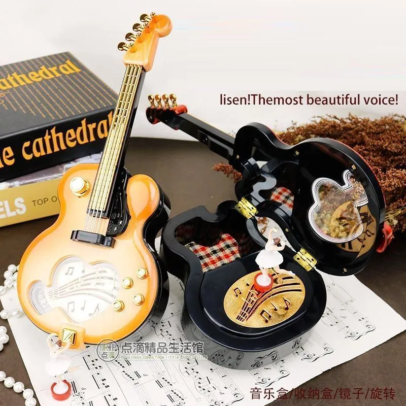 Музыкальная шкатулка заводная Гитара. Материал - АБС пластик.