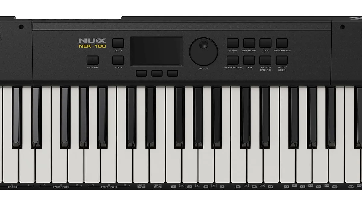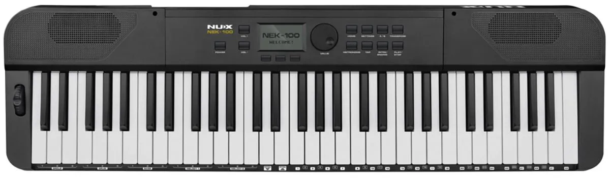 Nux NEK-100 — это портативная клавиатура с 61 клавишей и различными вариантами тембра, автоаккомпанементом и режимом живой музыки.