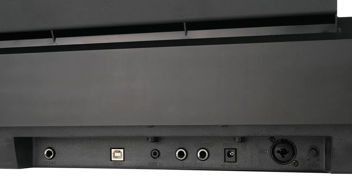 Возможности подключения: USB MIDI, AUX IN (стереоразъем 3,5 мм), AUX OUT (L/MONO, R), PHONES X 2 (стереоразъемы 3,5 мм), разъем для демпферной педали, разъем для блока педалей, микрофонный вход (XLR и комбинированный разъем 6,35 мм).